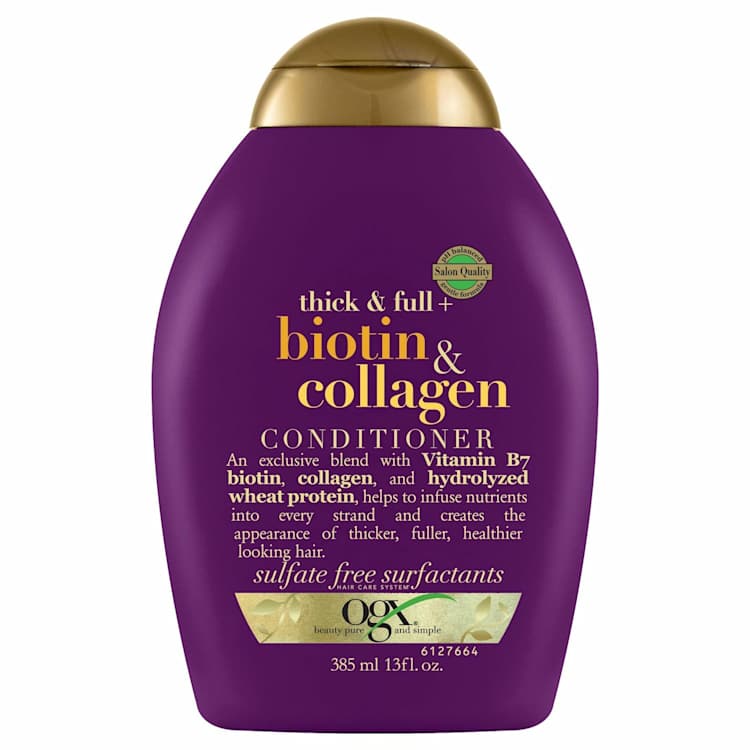 An exclusive blend with Vitamin B7 biotin, collagen, and hydrolyzed wheat protein, helps to infuse nutrients into every strand and creates the appearance of thicker, fuller, healthier looking hair.