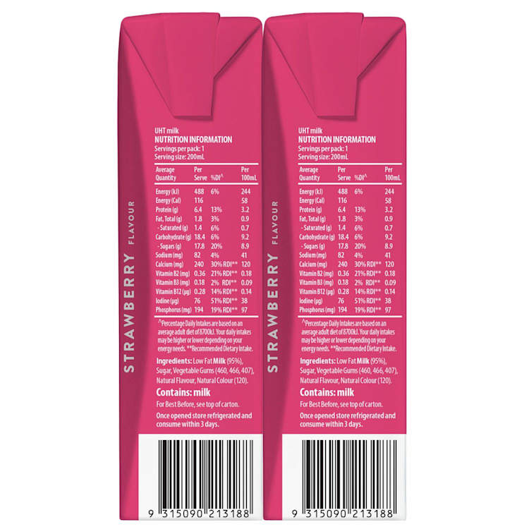 Australia's Own Strawberry Flavoured Kids Milk contains 6
