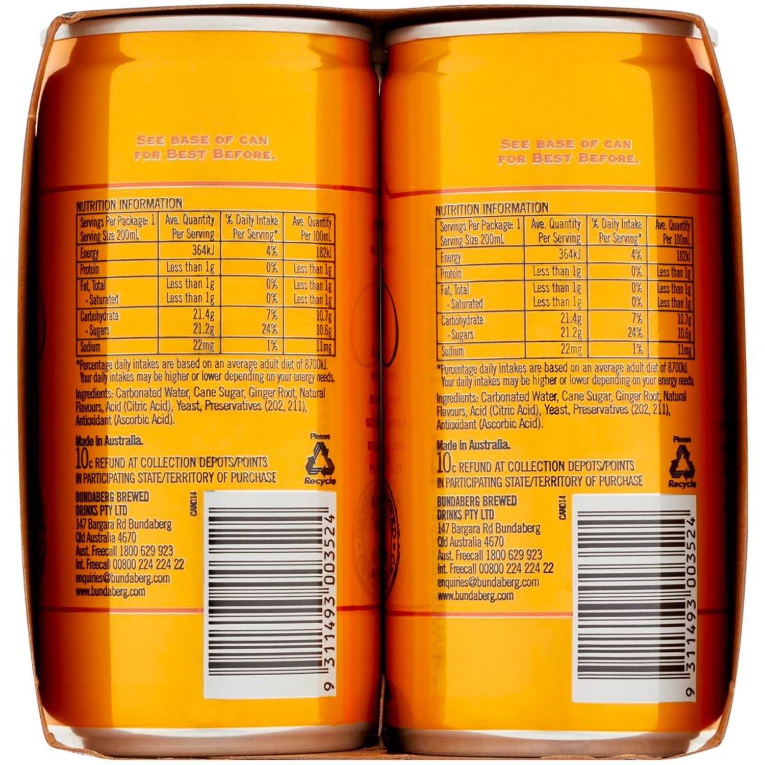 Bundaberg Ginger Beer Mini Can