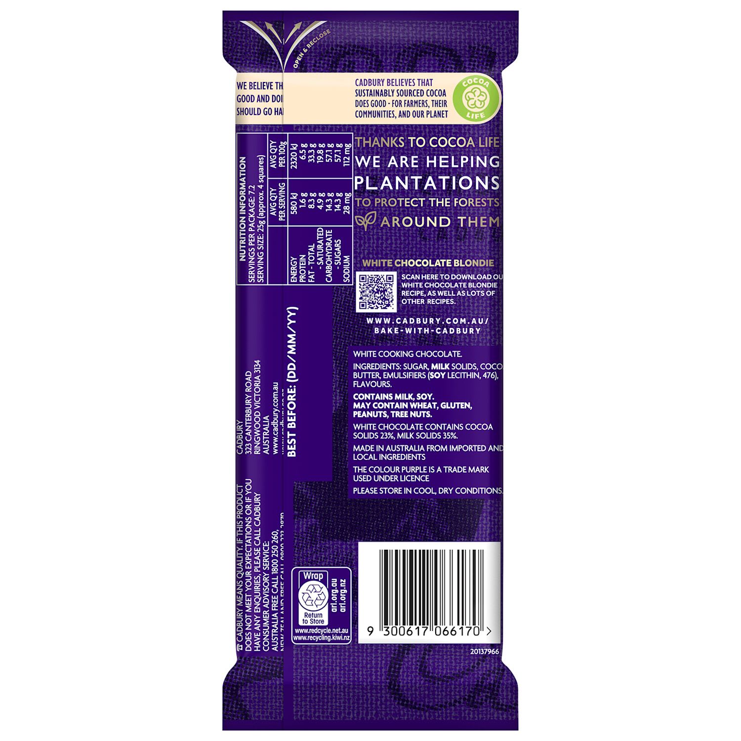 Country of Origin: Made in Australia from imported and local ingredients.