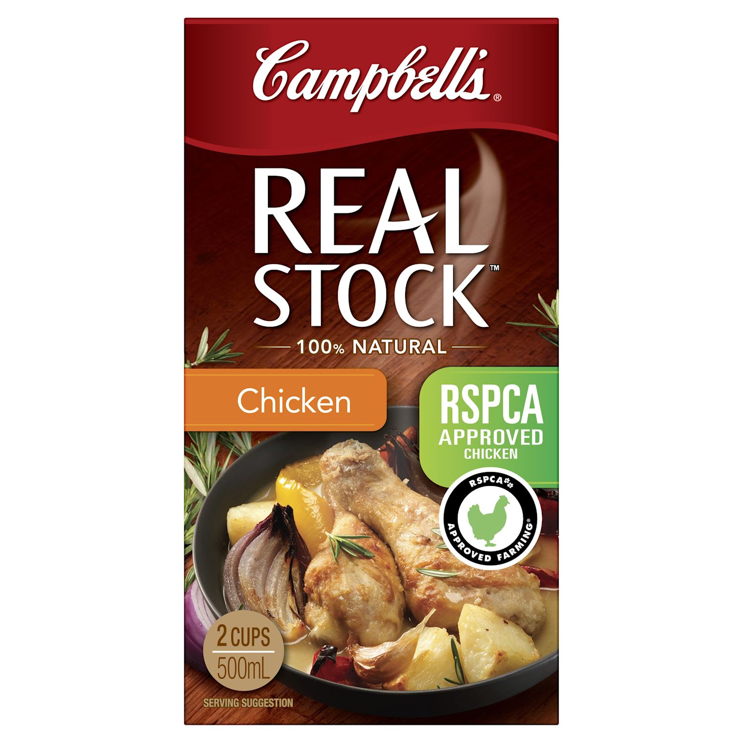 Made from scratch with natural ingredients and gently simmered for maximum flavour, Campbell's Real Stock Chicken Stock is a delicious, savoury stock base for any meal. Whether you're preparing up a comforting chicken noodle soup, or an irresistible bowl of chicken mushroom risotto, this chicken stock makes everyday cooking real easy. Made from RSPCA approved chicken, this stock is also great in sauces, stews or soups.