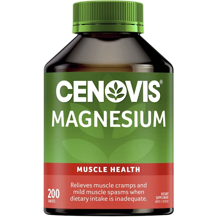 Help relieve mild muscle spasms and cramps with Cenovis Magnesium tablets. Each tablet contains 295mg Magnesium (from Heavy magnesium oxide), 30mg Magnesium (from Magnesium Amino Acid Chelate), 6mg Manganese (from Manganese Amino Acid Chelate), and 60mg Pyridoxine Hydrochloride (Vitamin B6), which, supports muscle relaxation, and also helps relieve mild muscle spasms and cramps when dietary intake is inadequate. In addition, Magnesium supports bone health, and eases the symptoms of premenstrual tension. Proudly Australian Made® by Cenovis, trusted by Australian families for over 80 years, Cenovis Magnesium tablets are quality tested during manufacturing to ensure product consistency and potency. Cenovis Magnesium tablets contain no added gluten, lactose, artificial flavours, artificial sweeteners, dairy products or animal-derived products. Adults 19 years and over: Take 1 to 2 tablets twice daily with food, or as recommended by your healthcare professional. If symptoms persist consult your healthcare practitioner. WARNING – Stop taking this medication if you experience tingling, burning or numbness and see your healthcare professional as soon as possible (Contains Vitamin B6).