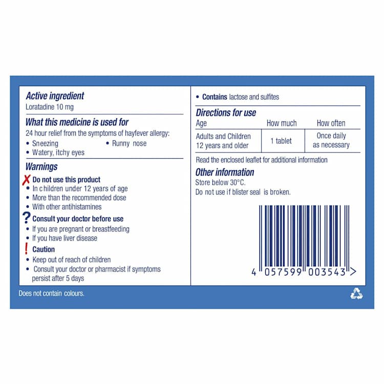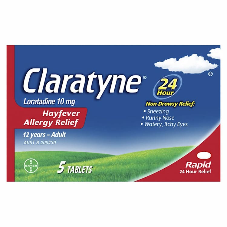 Claratyne is an antihistamine that works by blocking the effects of histamines and helps relieve symptoms caused by seasonal hayfever allergies.