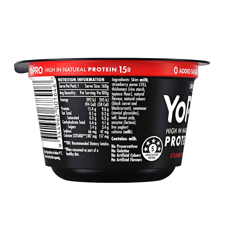 Fresh Milk, Strawberry Pulp (5%), Rice Starch, Natural Flavours, Enzyme (Lactase), Black Carrot and Blackcurrant Concentrate, Live Yoghurt Cultures (Lactobacillus Bulgaricus, Streptococcus Thermophilus), Lemon Pulp, Stevia Leaf Extract, Sea Salt, Milk Minerals