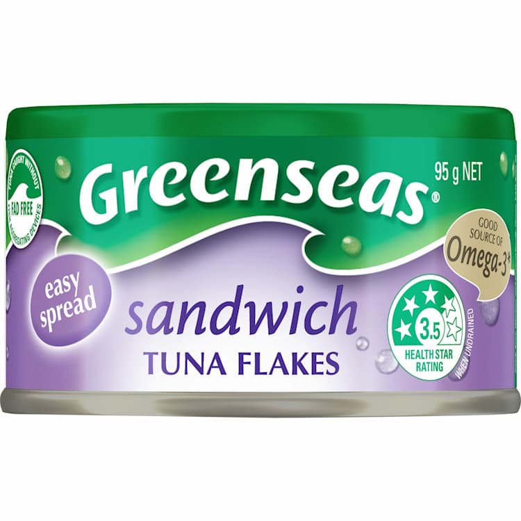 Designed for sandwiches, Greenseas® Sandwich Tuna Flakes are easy to spread. Keep your pantry stocked with these tuna flakes for an easy and delicious lunch at home or on the go. Make the perfect tuna sandwich or wrap with Greenseas® Sandwich Tuna Flakes. Simply spread our tuna flakes on sliced bread and add your favourite salad fillings for a delicious lunch at school, work or home. Greenseas® Sandwich Tuna Flakes provides a good source of Omega-3 (when drained). You can also try on toast as a tuna bruschetta.
