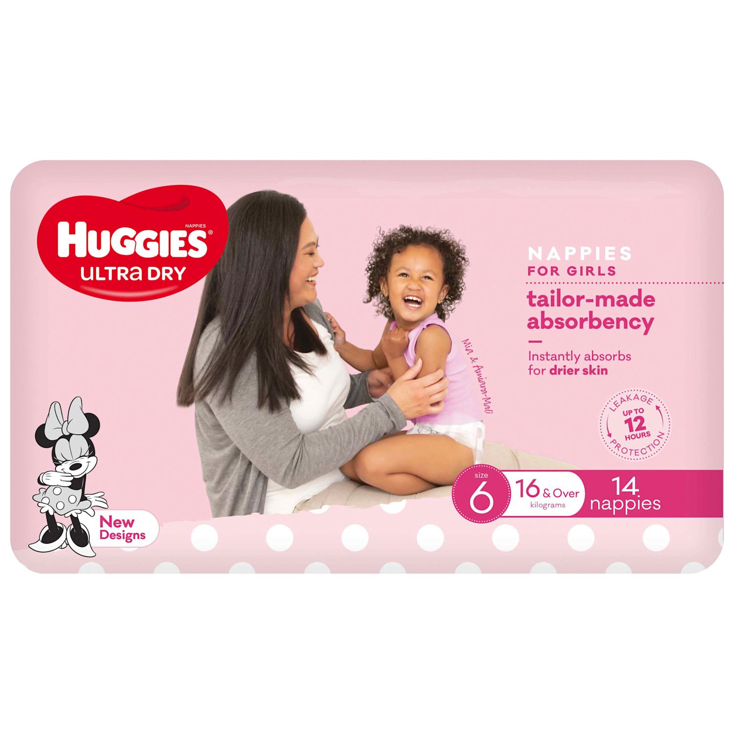 Huggies Ultra Dry Nappies Girl Size 6 (16kg+)14 Pack