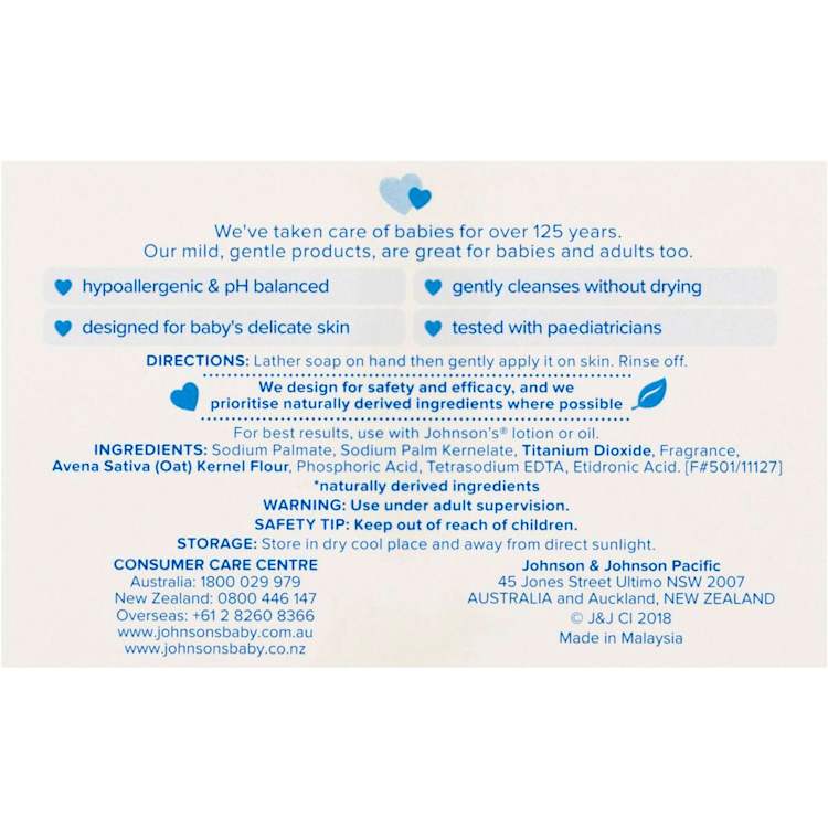 Use Johnson's Baby soap during baths or showers to gently keep your baby’s skin feeling healthy and smooth. The baby soap bar is formulated with moisturisers to give a rich, creamy lather which gently cleanses and helps maintain healthy looking skin.Use JOHNSON’S baby bar on baby's face and body anytime you bathe your baby.