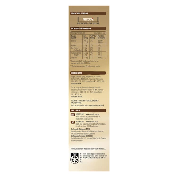 Nescafe Coffee Mixer Sachets Caramel Latte10 Pack