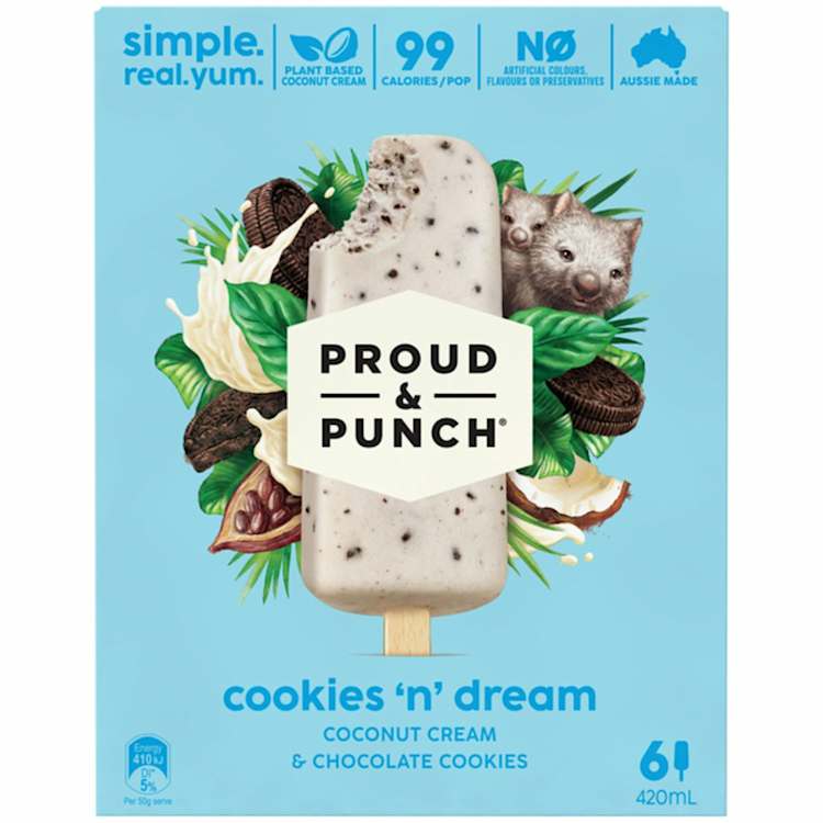 A feel-good pop that is simply yum – Cookies ‘n’ Dream! A beloved flavour, that is now better for you. Made with smooth coconut cream, choc cookie crumb and no nasties, it’s sure to satisfy those indulgent cravings! No artifical colours or flavours, plant based, and only 99 calories per pop!