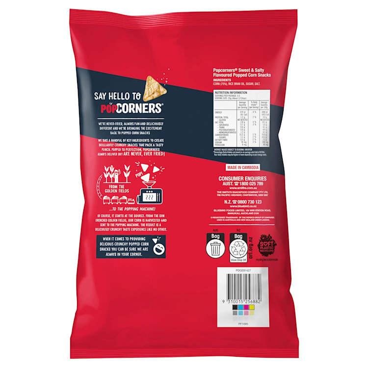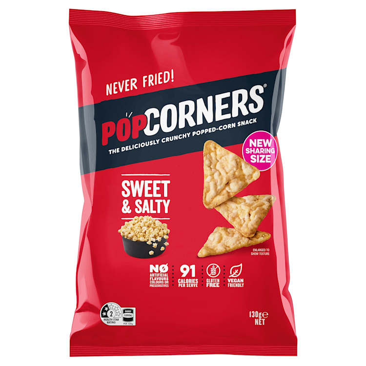Snack time should be something to look forward to, which is why PopCorners Popcorn Chips Share Pack Sweet Chilli 130g recreates the well-known snack of popcorn into a fun triangle shape. There’s nothing but good vibes ahead when you enjoy the combined pop and crunch of sweet chilli popped corn chips.