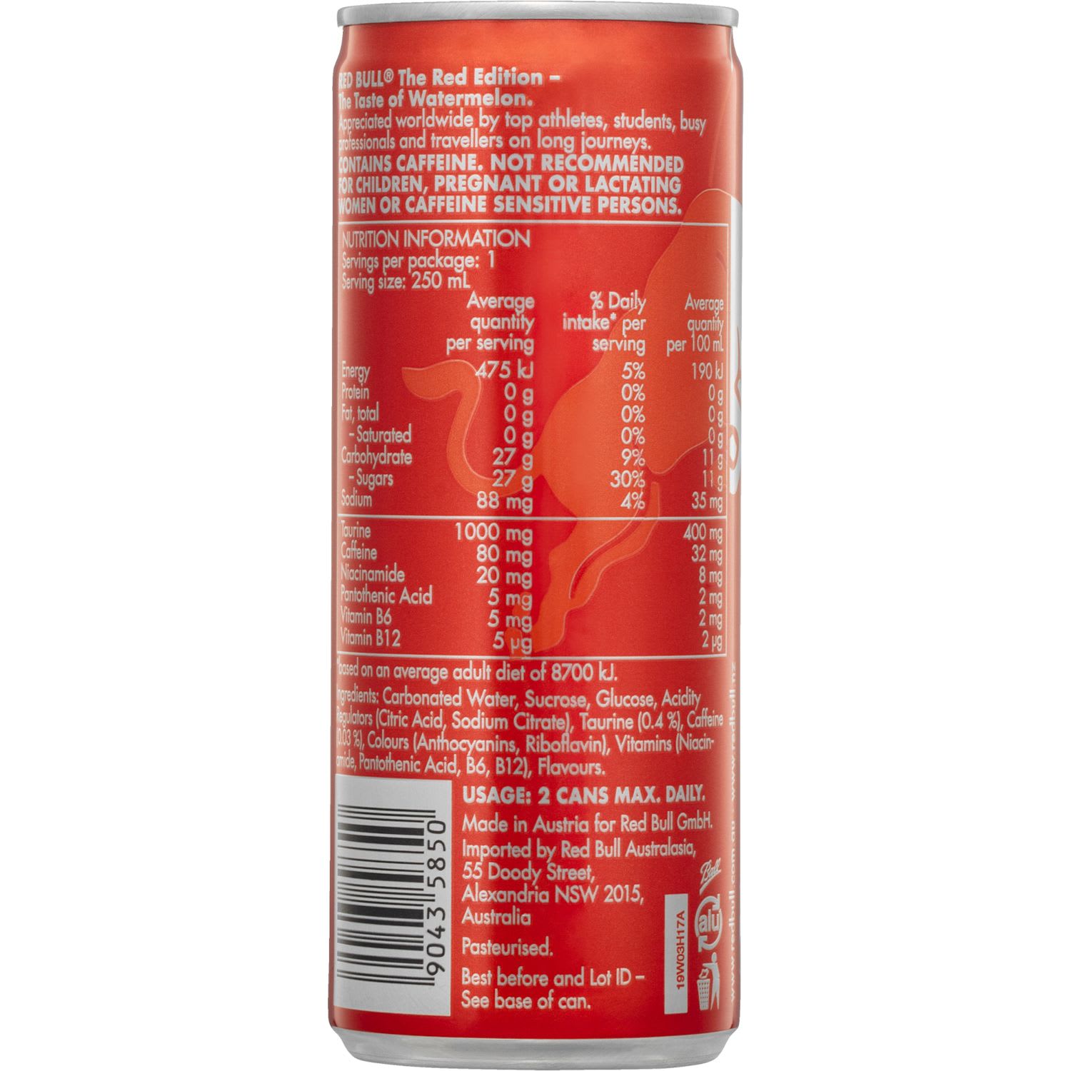 Country of Origin: Made in Austria for Red Bull GmbH.
