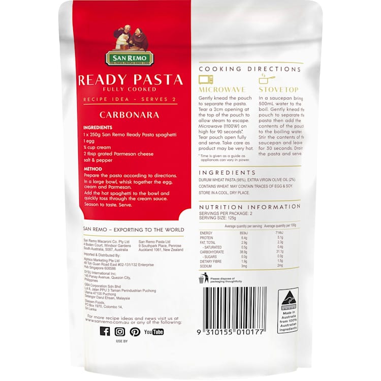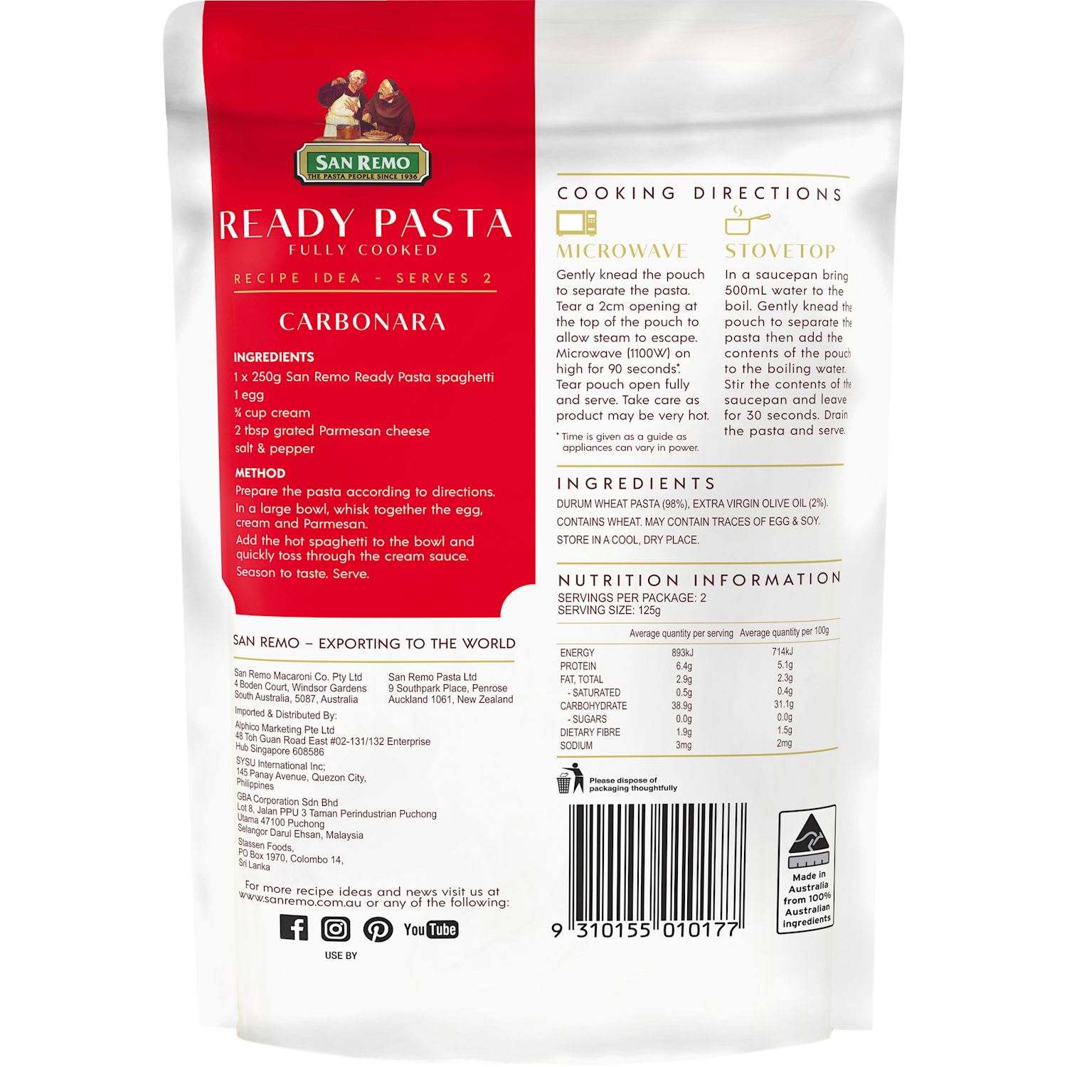 San Remo Ready Pasta Fully Cooked Spaghetti250 Gram