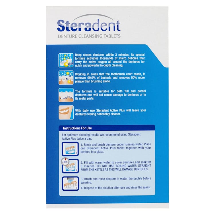 - With daily use Steradent Active Plus will leave your dentures feeling noticeably cleaner.