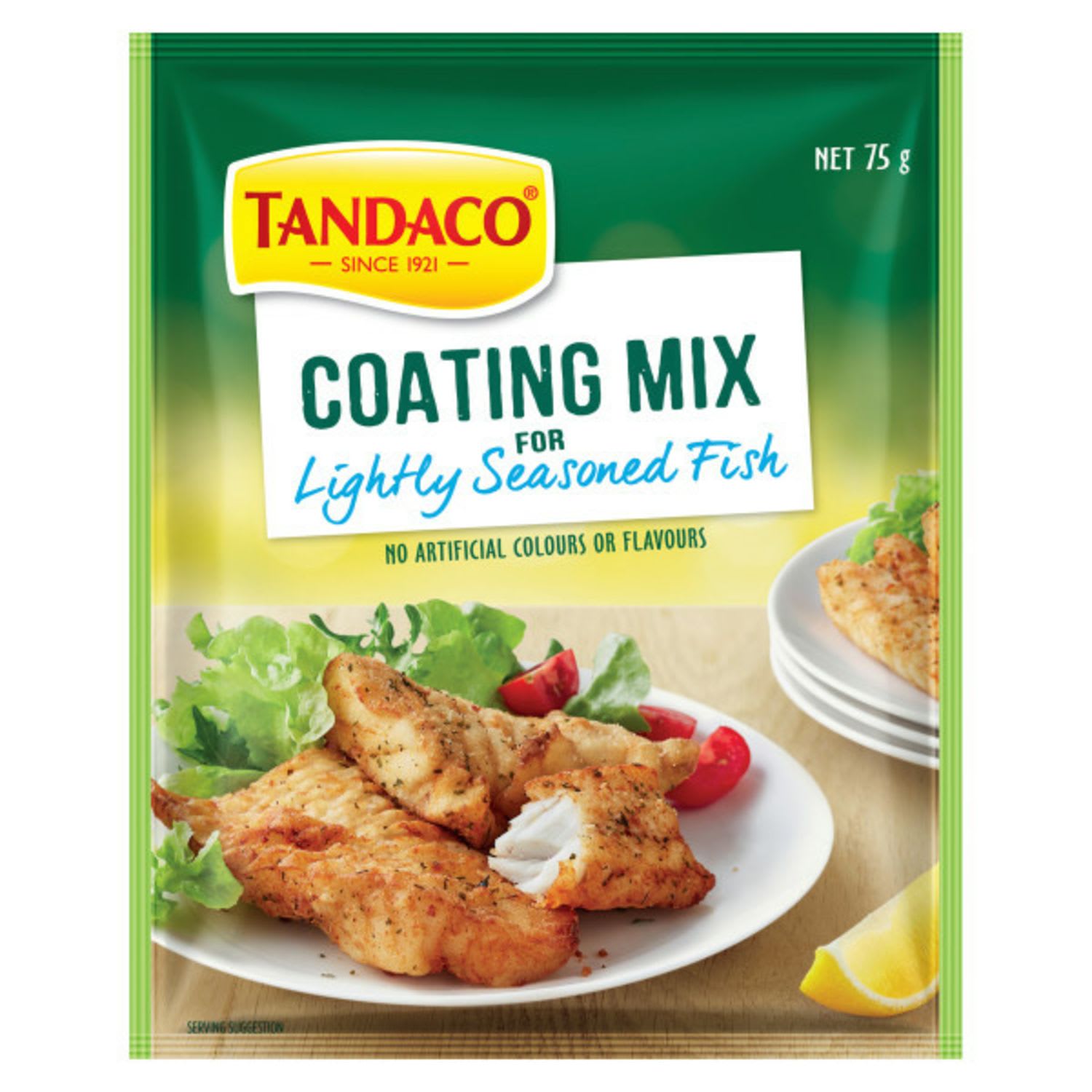Tandaco® Coating Mix for Lightly Seasoned Fish takes the mess and fuss out of coating all types of fish. With no need for eggs or messy crumbs, you can easily enjoy tasty shallow fried, baked or deep fried fish, calamari, onion rings and vegetables pieces. Tandaco® Coating Mix for Lightly Seasoned Fish is a combination of specially selected herb and spice flavours to complement and enhance all types of fish. Tandaco® Coating Mix for Lightly Seasoned Fish can also be used for octopus, onion rings, prawns or any vegetable pieces you like. It contains no artificial flavours or colours, requires no eggs and is convenient to use for lunch and dinner.