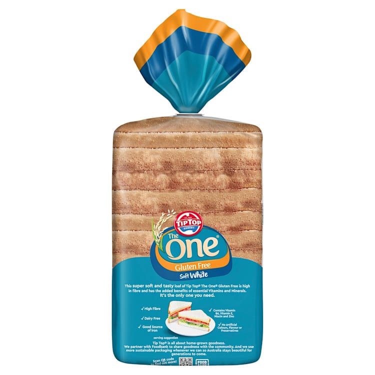 This super soft and tasty loaf of Tip Top® The One® Gluten Free is high in fibre and has the added benefits of essential Vitamins and Minerals.Tip Top® is all about home-grown goodness.